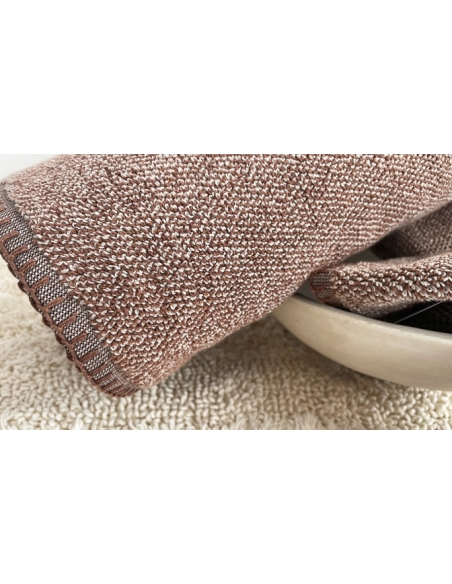 Juego de toallas de tres piezas. Toallas con detalle de punto tejido en contraste en el borde.