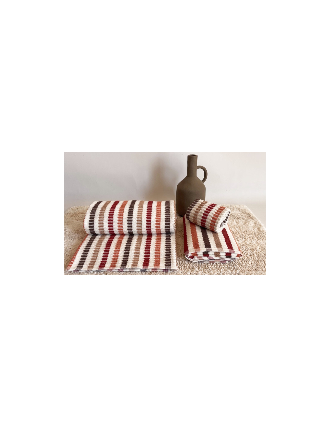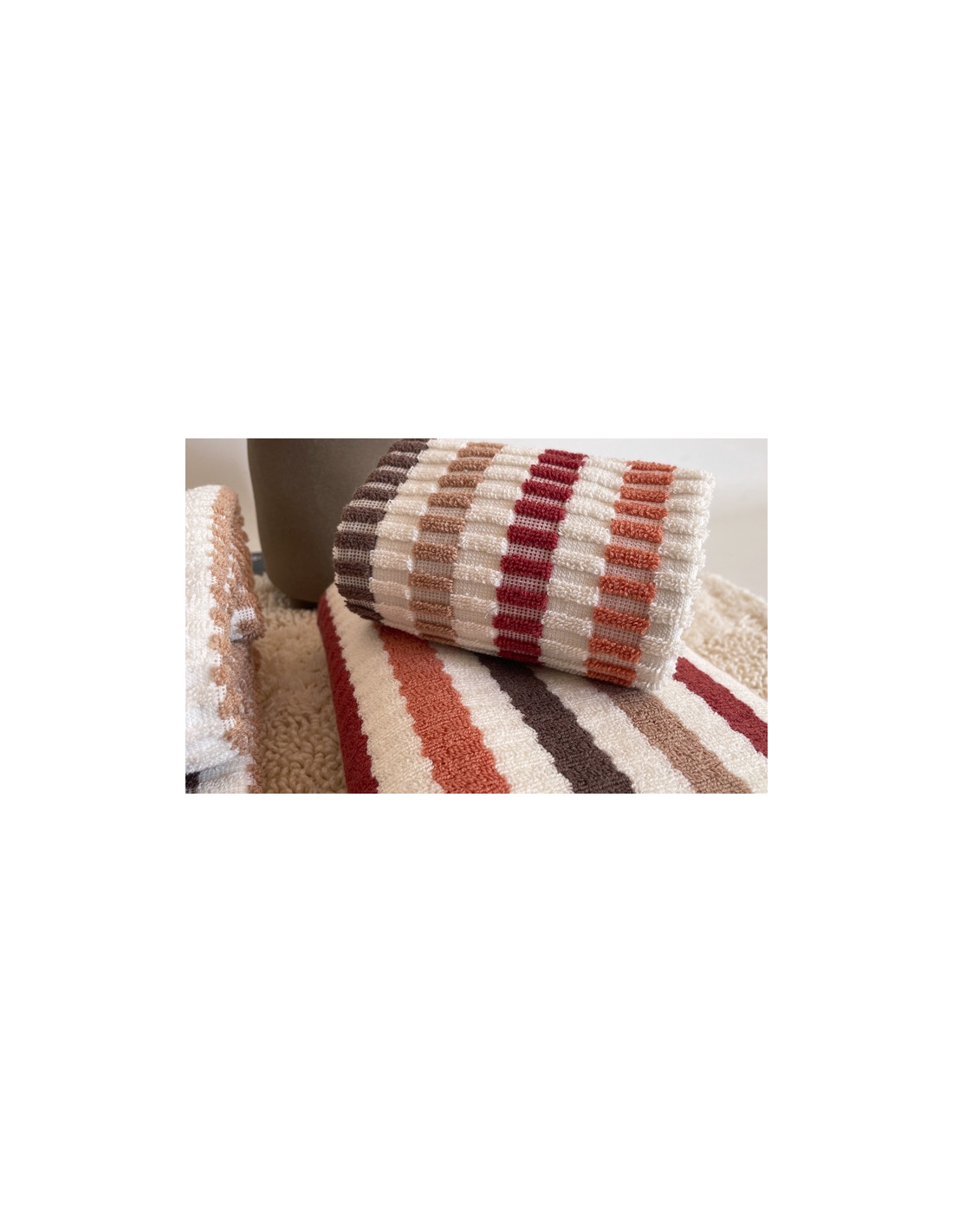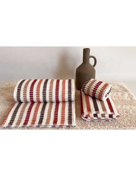 Juego de toallas reversibles, confeccionadas en algodón suave con acabado texturizado.