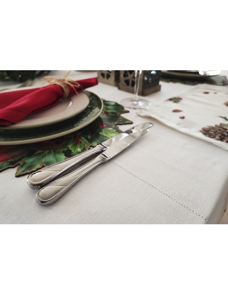 Mantel liso con punto abierto en todo el perímetro y dos líneas centrales de punto abierto en todo el largo.