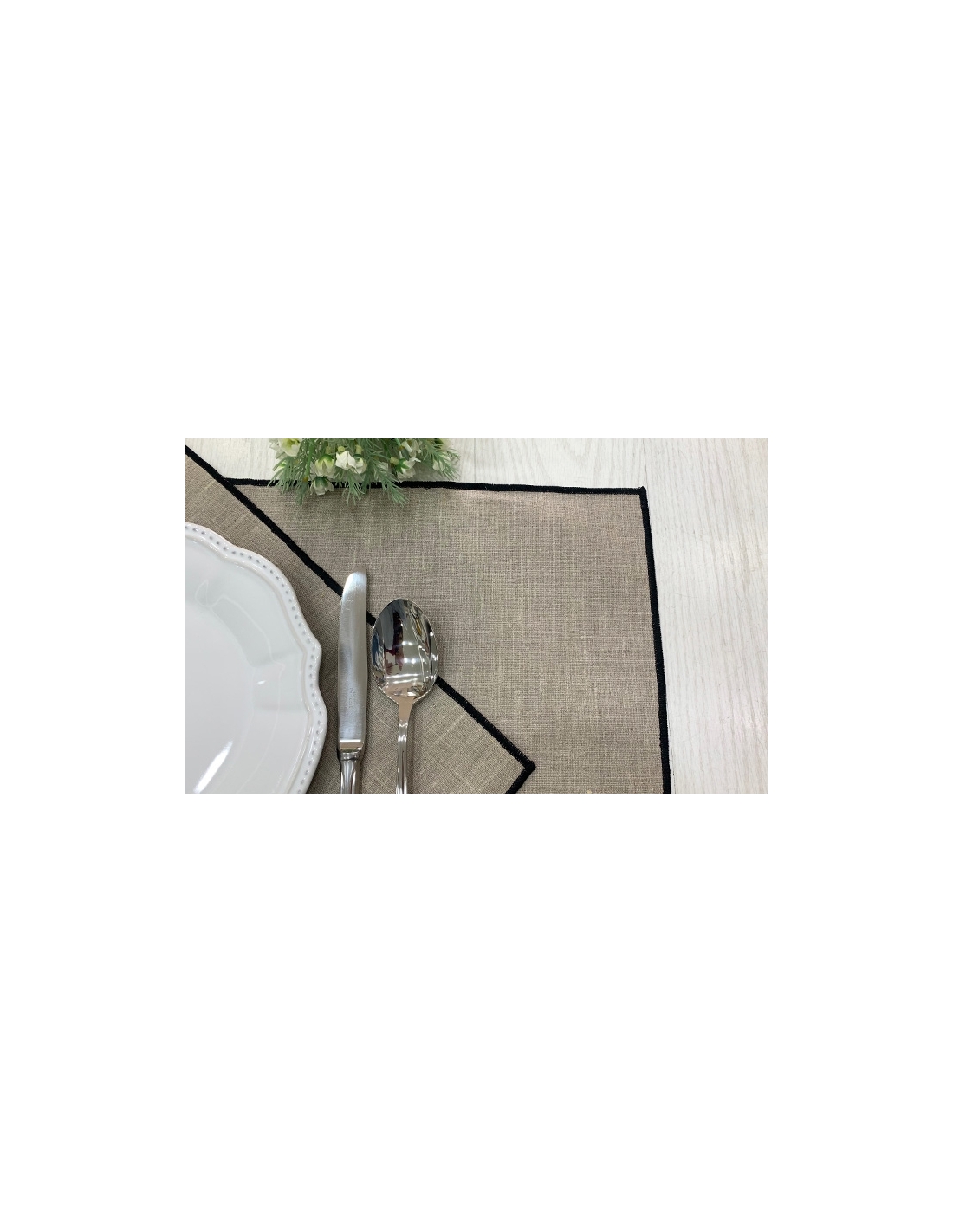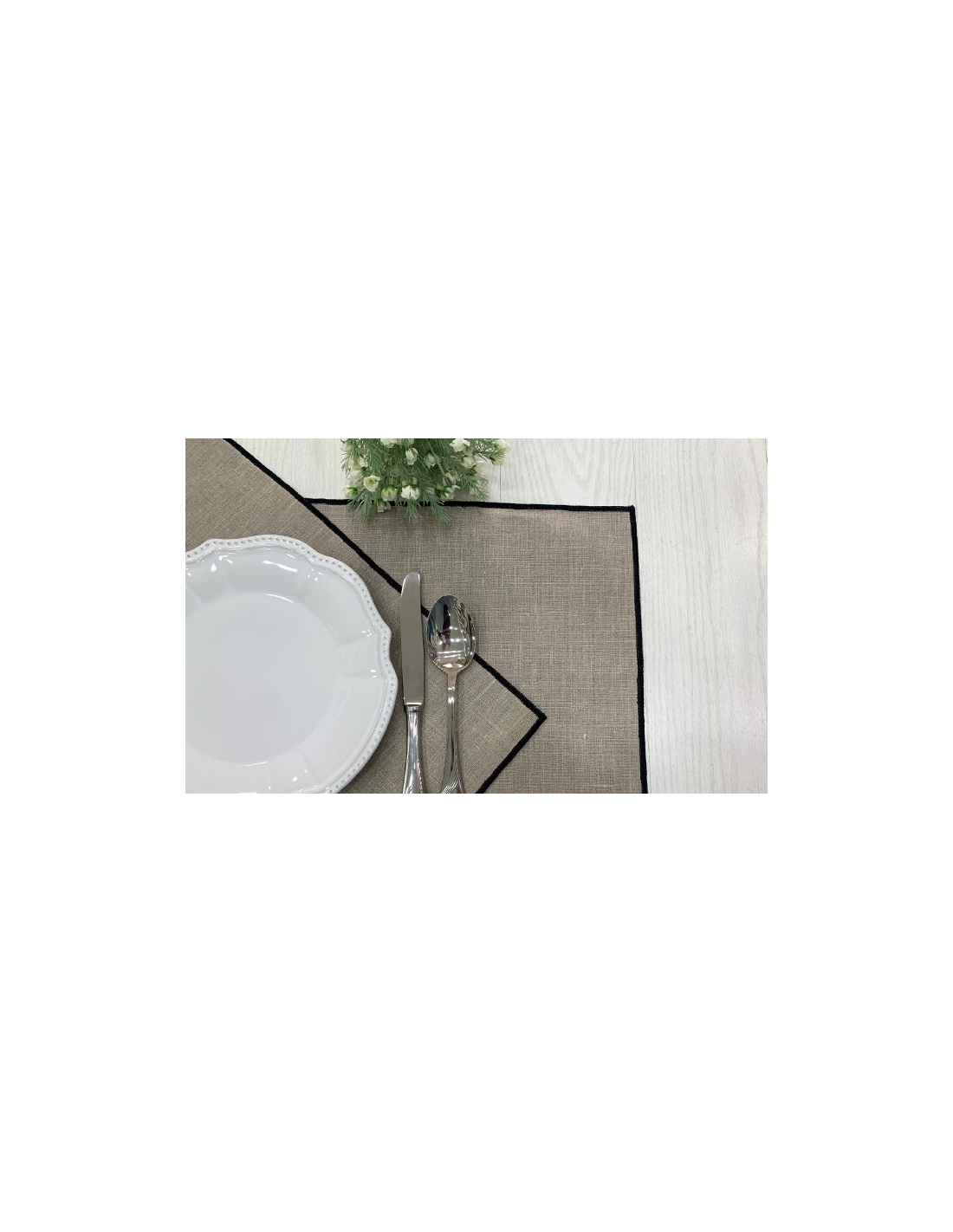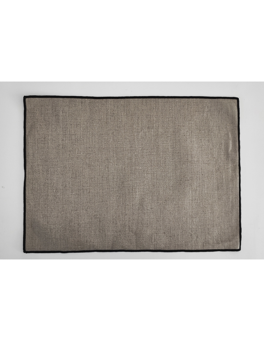 Mantel individual de lino recubierto con un tratamiento que aporta al tejido un tacto plastificado, haciéndolo repelente. No es necesario planchar.