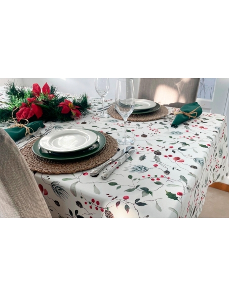 Mantel estampado con tratamiento anti-mancha y anti-arrugas.