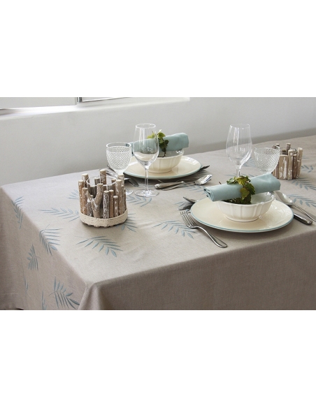 Mantel con bordado de colores en el centro, en toda su longitud, formando un efecto de camino de mesa.