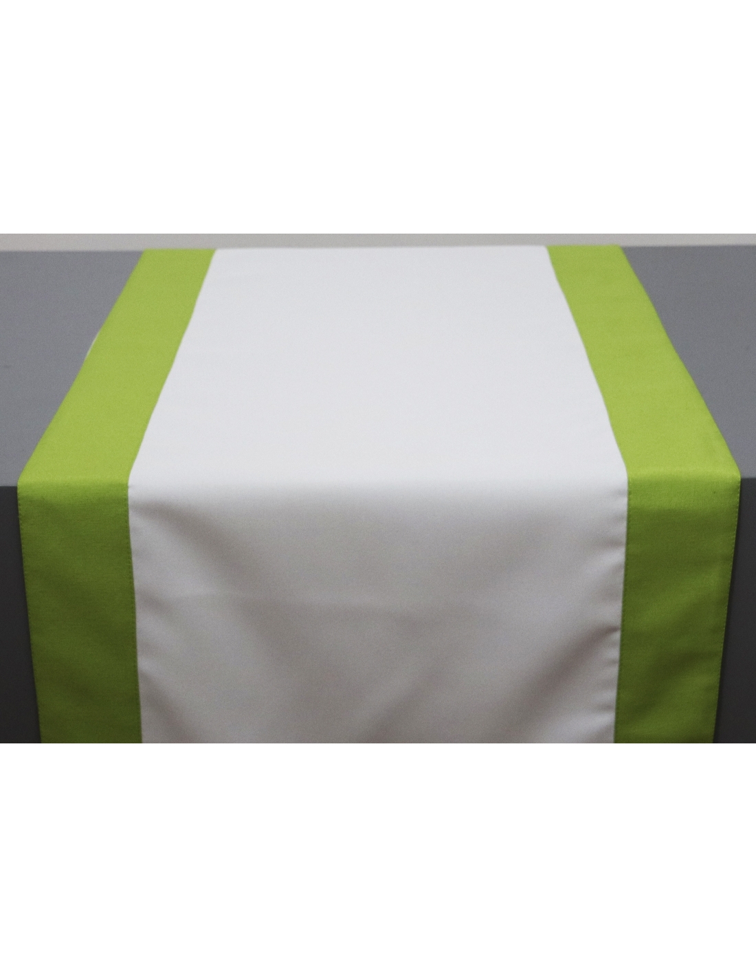 Camino de mesa liso con una barra de color de 6cm alrededor, con tratamiento antimancha y anti-arrugas.