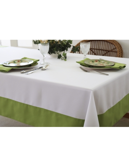 Mantel liso con una barra de color de 14 cm alrededor, con tratamiento antimancha anti-arrugas.