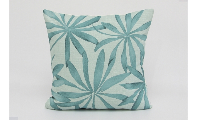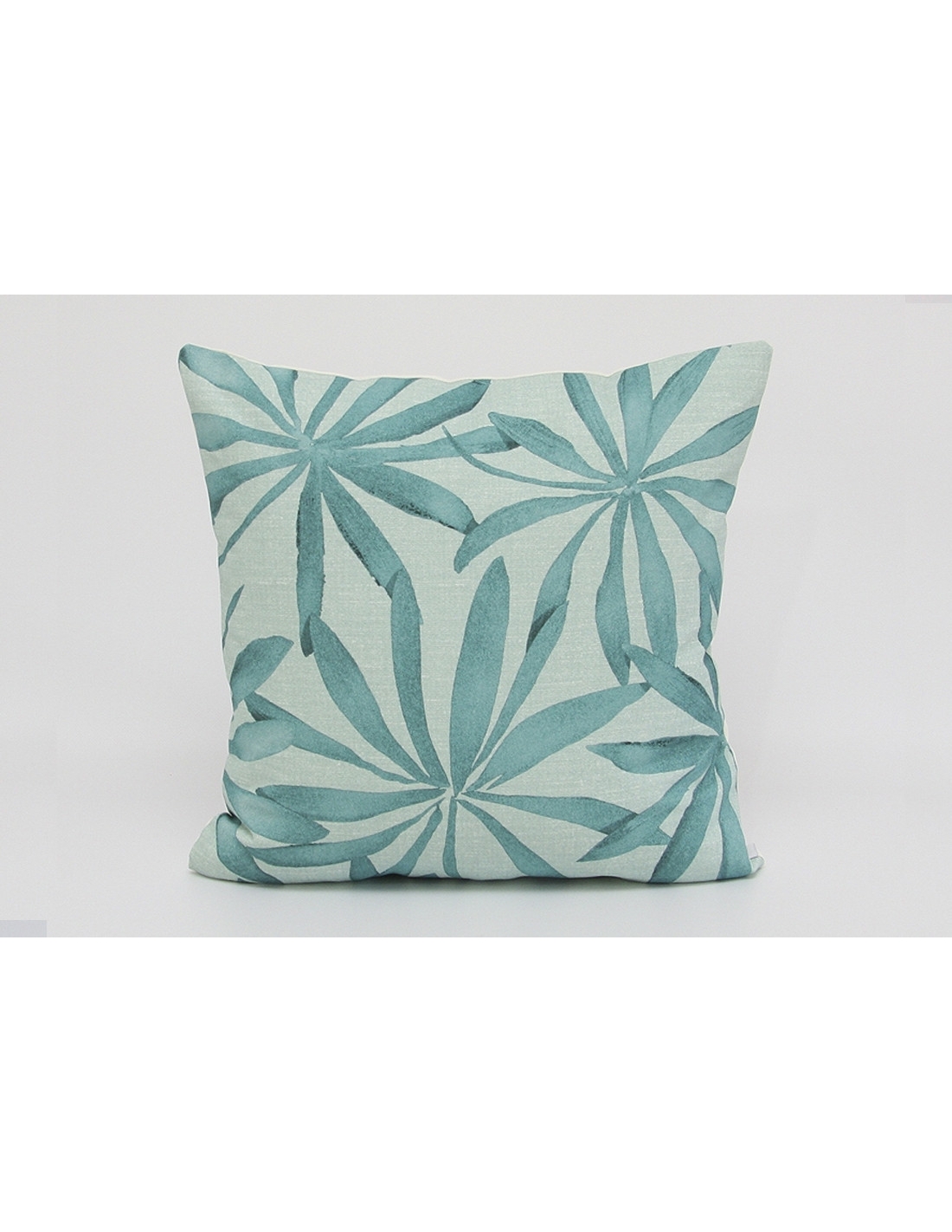 Funda de cojín de algodón con estampado digital en la parte delantera y trasera lisa, igual que el color de fondo. Tiene cremallera invisible en un lateral.