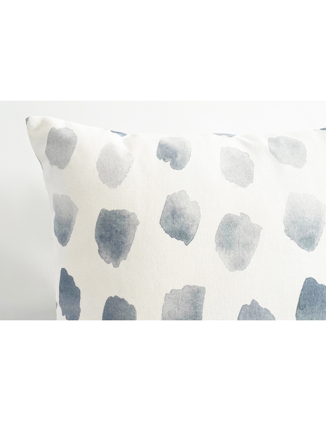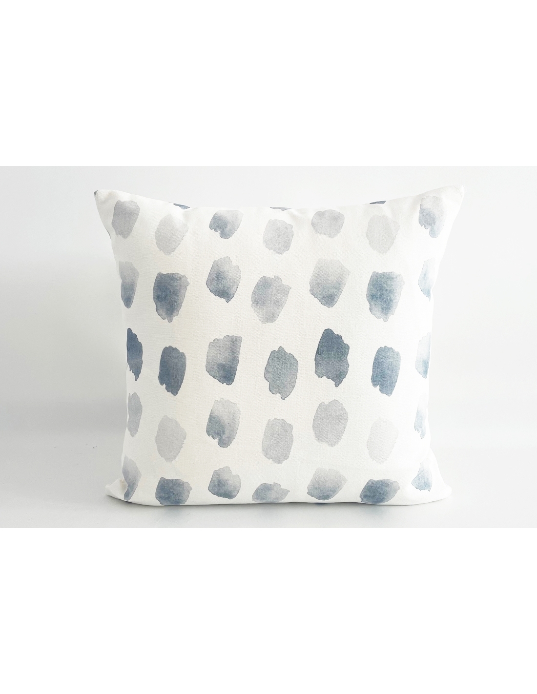 Housse de coussin en coton avec impression numérique sur le devant et dos uni, identique à la couleur de fond. Il a un zip invisible sur un côté.