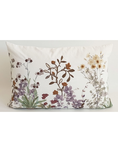 Housse de coussin imprimée avec détails brodés en relief.