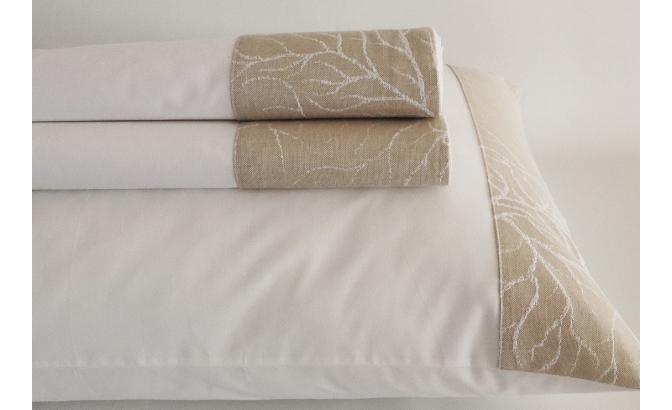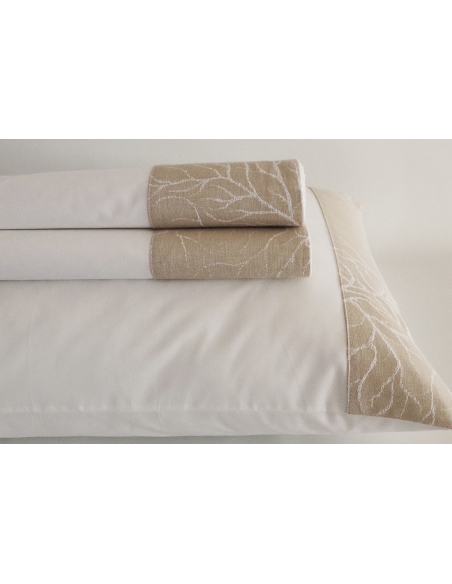 Drap de dessus avec oreillers percale 200 fils Coral beige
