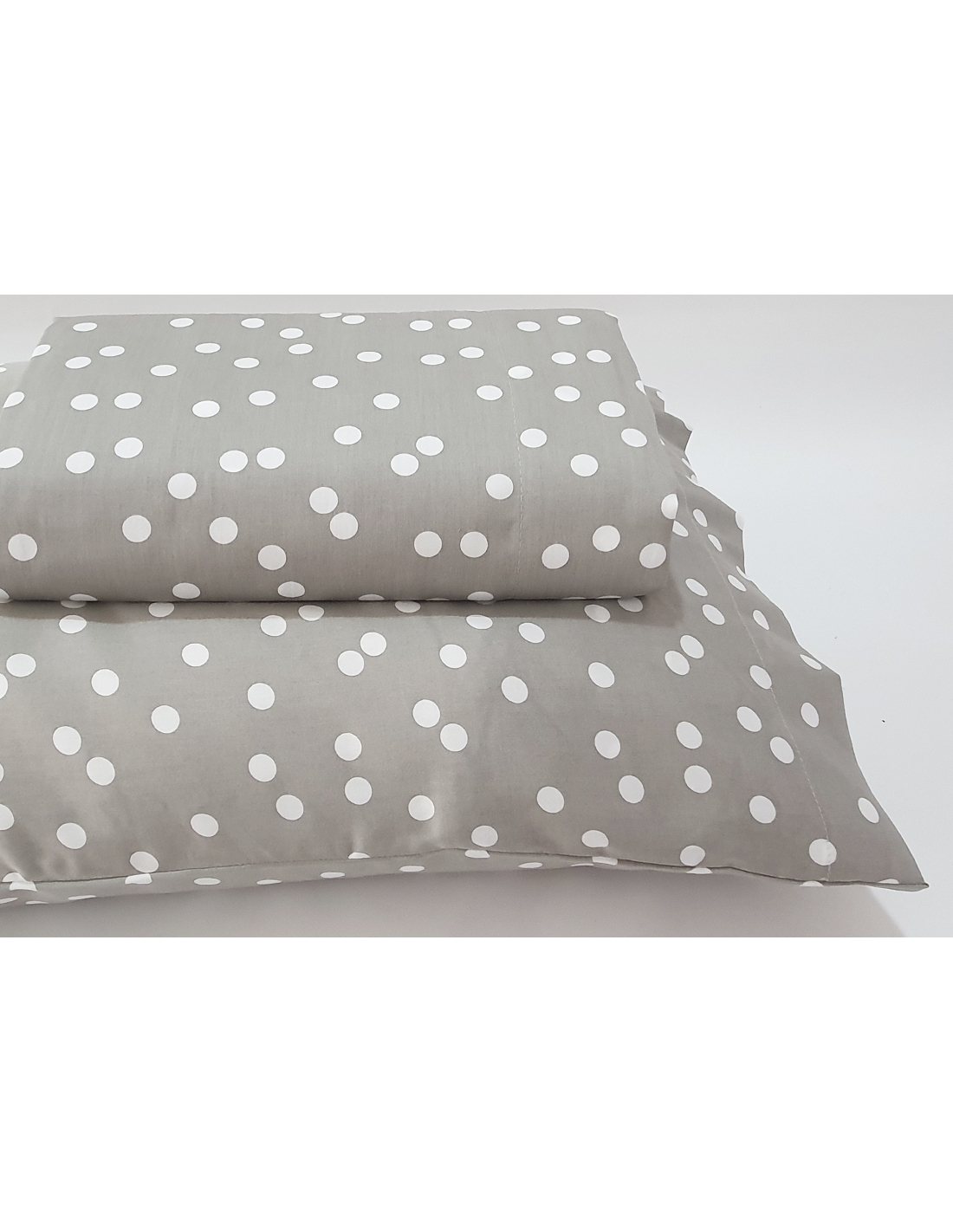 SATIN 200 fils draps de dessus avec oreillers gris avec points blancs
