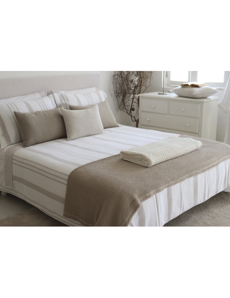 Le sac se ferme par un rabat de 0,45 cm en bas pour se placer sous le matelas ou faire une enveloppe, l'empêchant de glisser. Et les coussins se ferment avec des boutons des deux côtés.