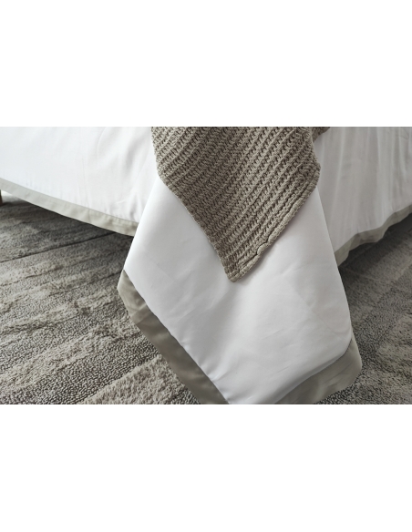 SATIN 300 fils 100% coton peigné et mercerisé, traité mécaniquement. Avec ces caractéristiques, nous obtenons un tissu résistant, doux et lisse, facile à repasser.