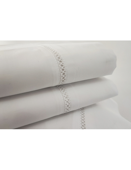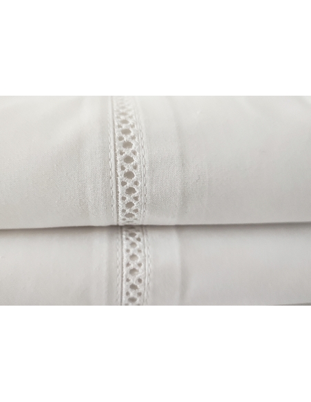 Drap supérieur et oreillers avec barres de couleur. Les coussins sont appliqués des deux côtés et se ferment avec un rabat.