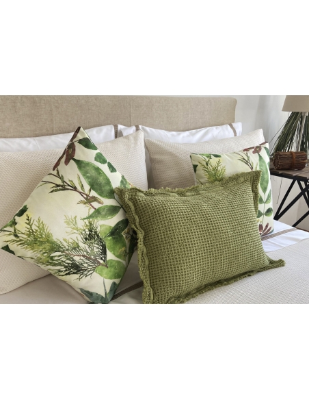 Couvre lit en coton avec texture piquée et motif nid d'abeille. Fini avec des coins coupés.