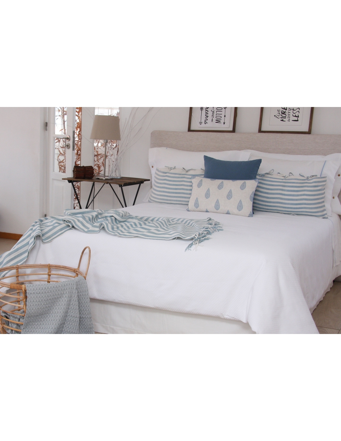 Housse de couette avec motif nid d'abeille et dos uni blanc, ainsi que les oreillers respectifs. Vous permet de dormir sur le côté lisse et de décorer avec le côté imprimé.