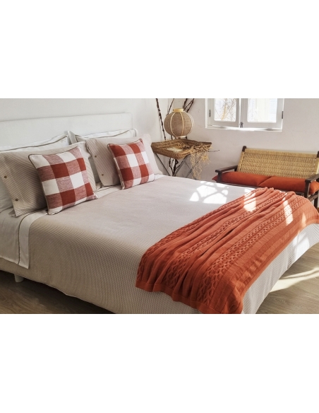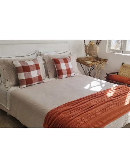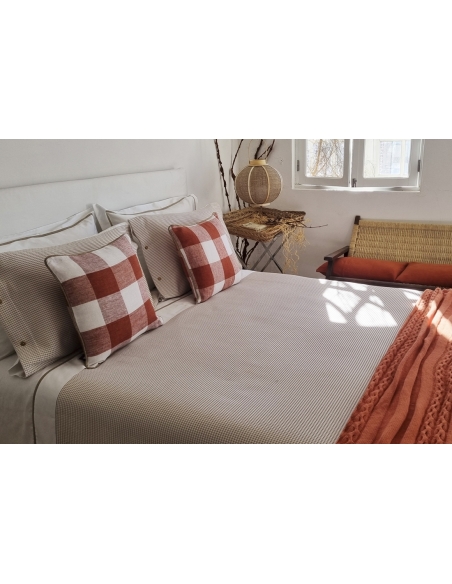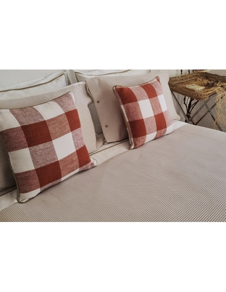 Le sac se ferme par un rabat de 0,45 cm en bas pour se placer sous le matelas ou faire une enveloppe, l'empêchant de glisser. Et les coussins se ferment avec des boutons des deux côtés.