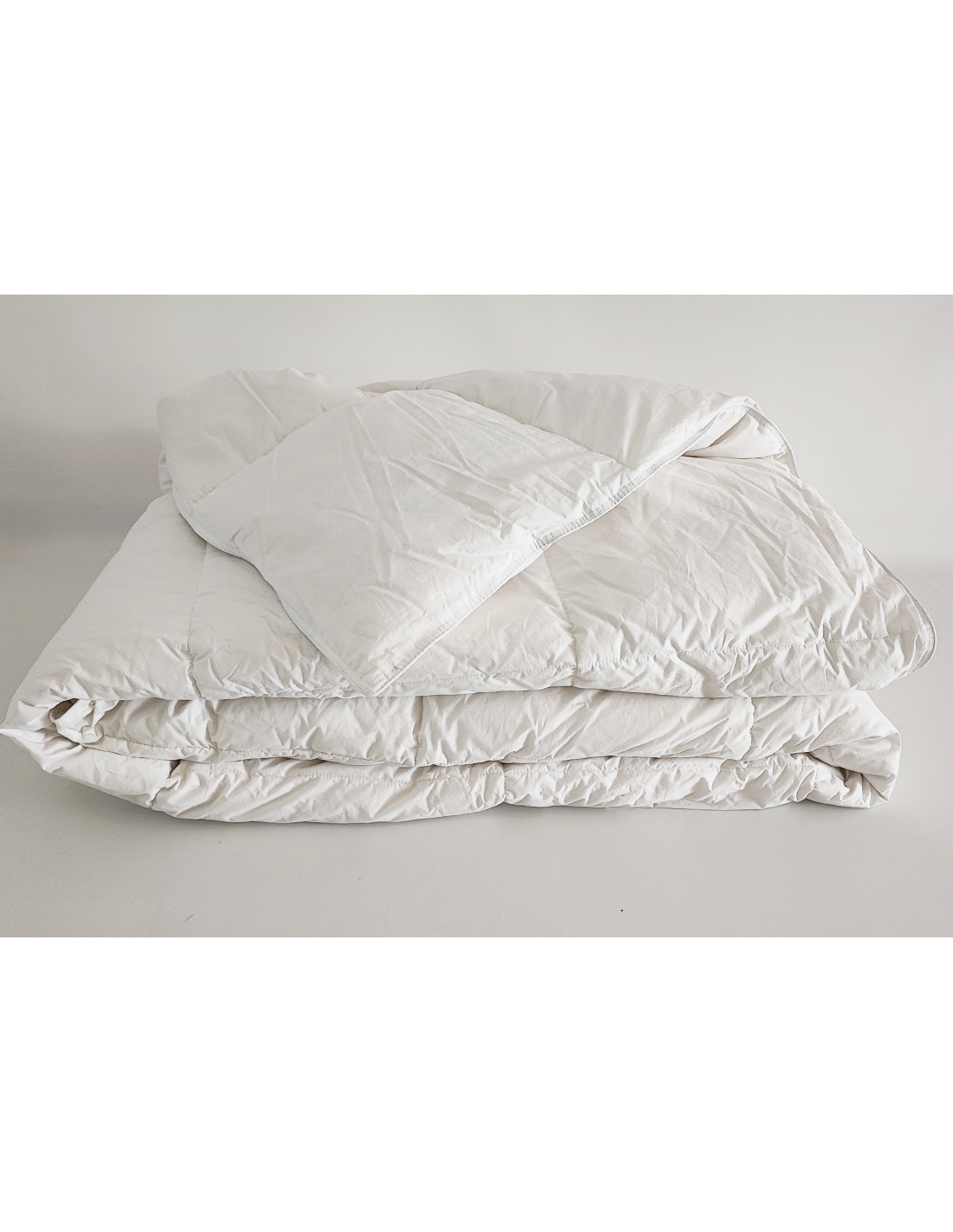 Garnissage couette composé de 5% plumes et 95% duvet. Fournit une chaleur moyenne. Son utilisation est recommandée pendant la mi-saison ou les saisons froides, ou dans les zones où les températures sont moyennes à basses, car il transmet une chaleur moyenne pendant le repos.