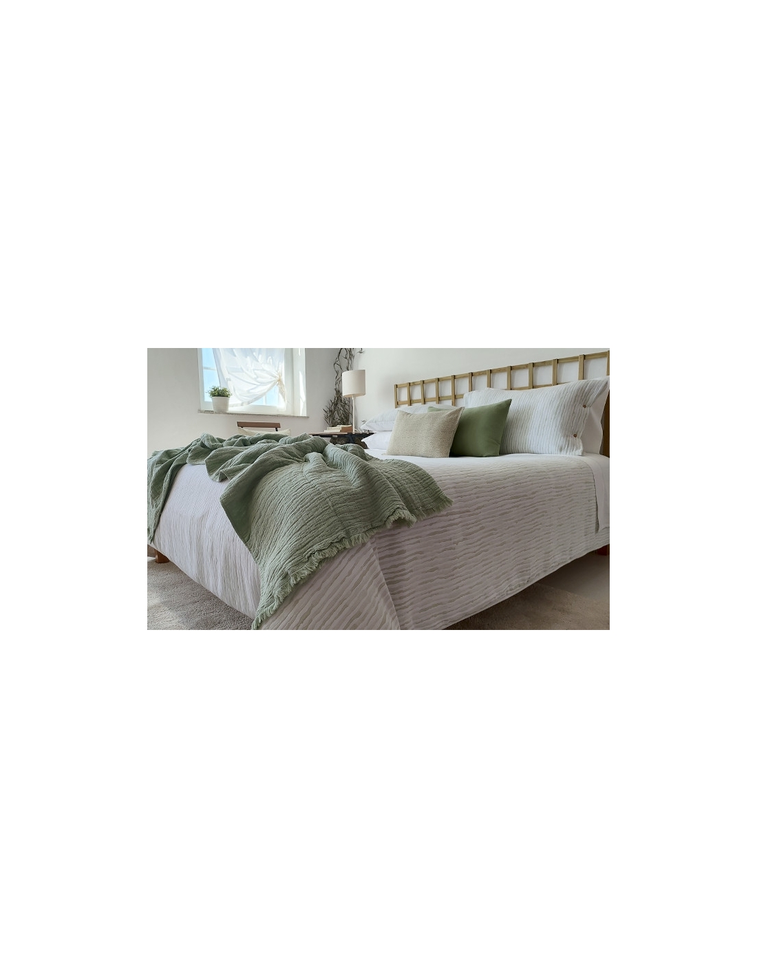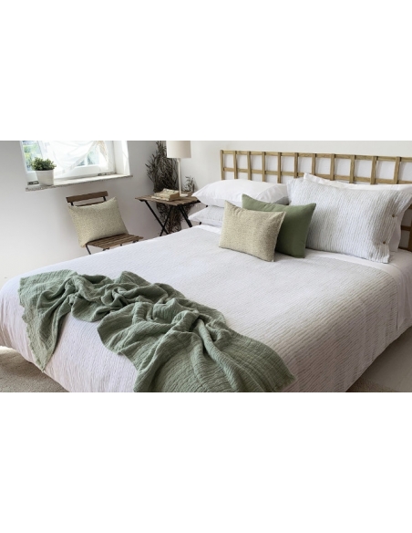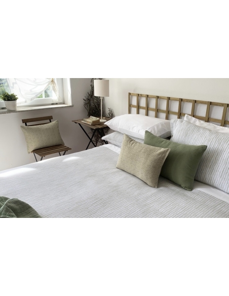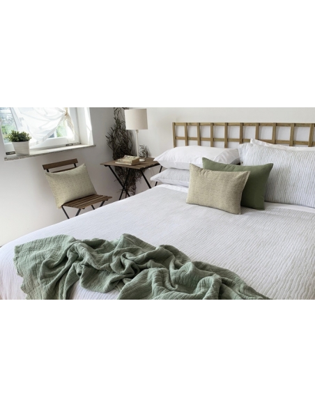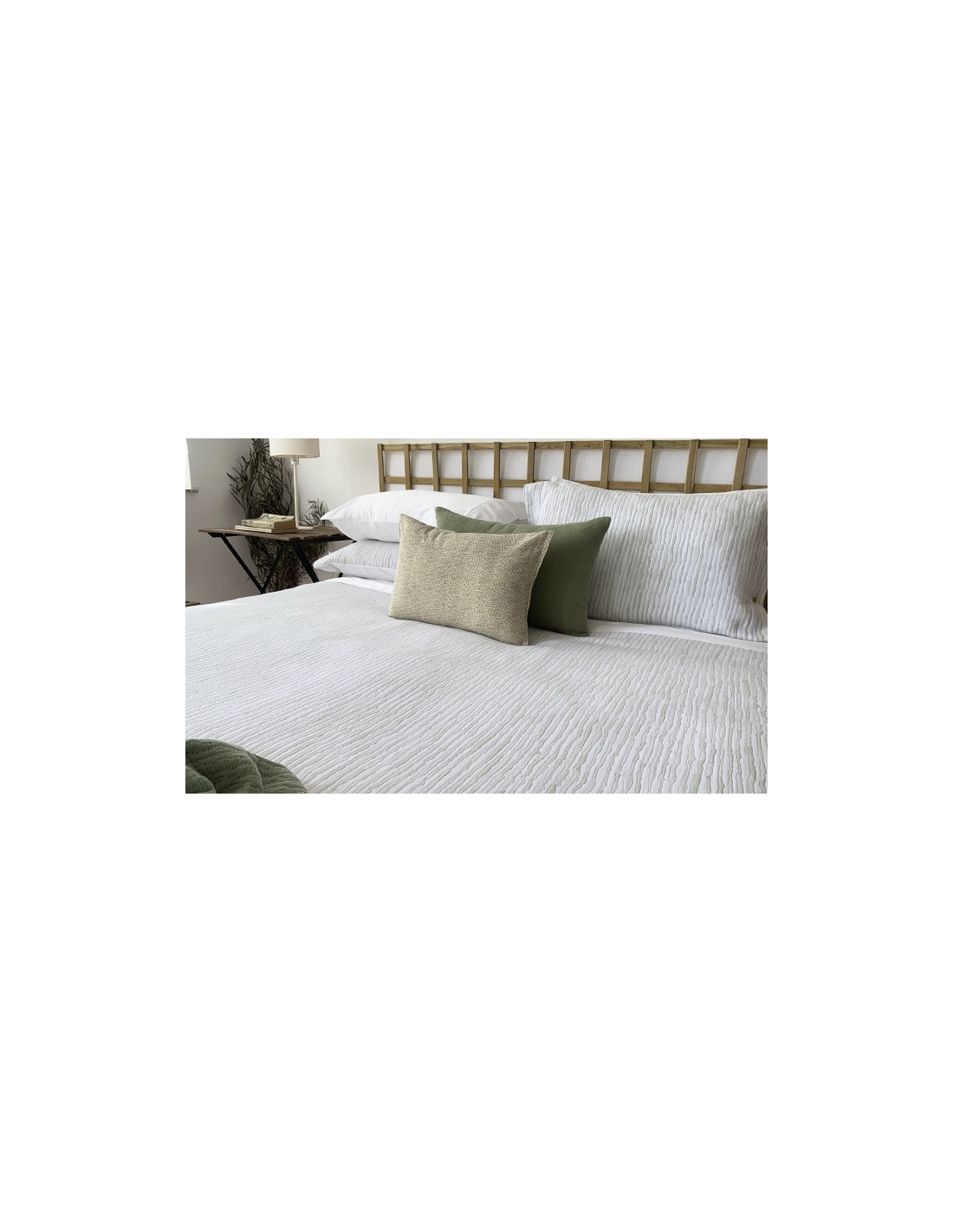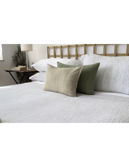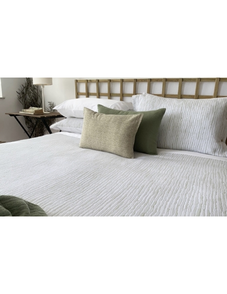 Sac de couette avec un tissu conçu avec une texture douce qui donne un effet matelassé et un dos blanc lisse, ainsi que les oreillers respectifs. Permet de dormir sur le côté lisse et de décorer avec le côté texturé.