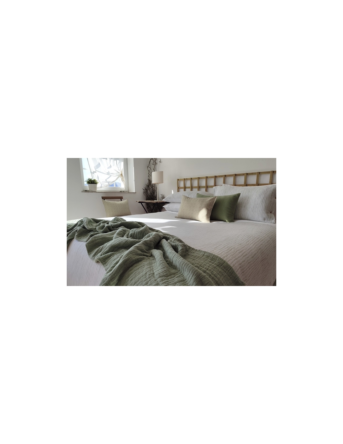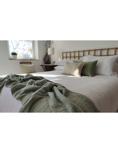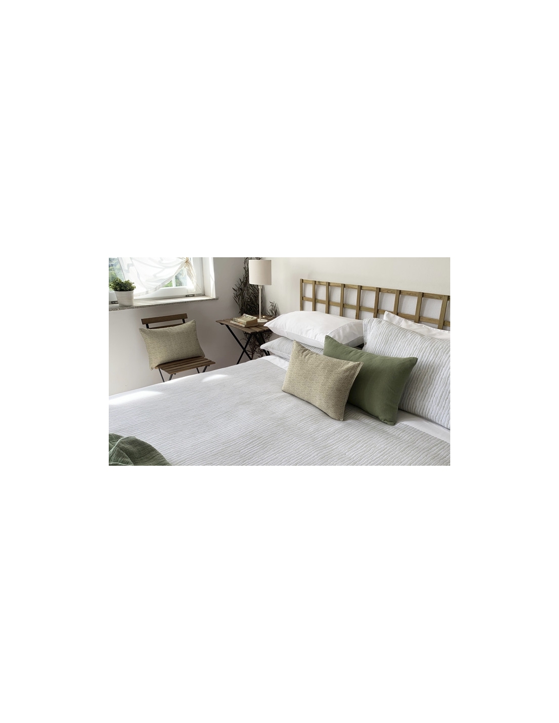Sac de couette avec un tissu conçu avec une texture douce qui donne un effet matelassé et un dos blanc lisse, ainsi que les oreillers respectifs. Permet de dormir sur le côté lisse et de décorer avec le côté texturé.
