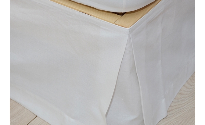 Pied de lit lisse avec du velcro déjà appliqué sur le dessus du tissu et du ruban adhésif à poser sur le cadre du lit.