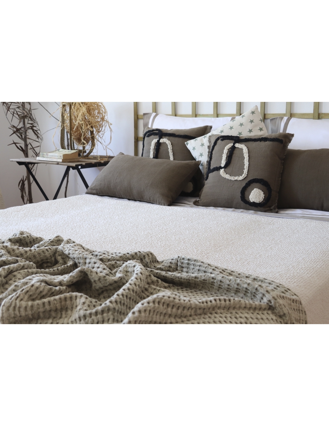 Couvre-lit avec traitement de lavage à la pierre, qui vous offre un rétrécissement naturel et définitif. Ainsi, il lui permet d'être lavé fréquemment, sans rétrécissement et sans repassage!!