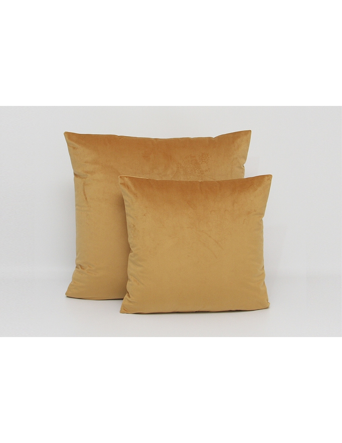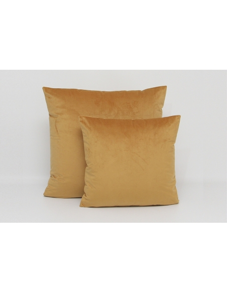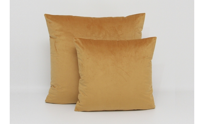 Housse de coussin en velours lisse. Il est réversible et possède un zip invisible, permettant de l'utiliser des deux côtés.