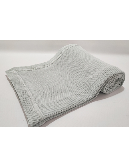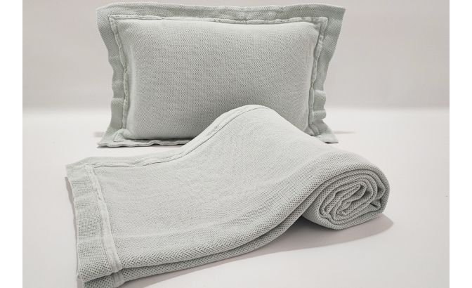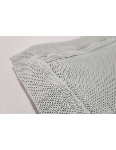 Couverture avec point "nid d'abeille", lavé et pré-rétréci, ce qui la rend très agréable au toucher et pratique, car elle ne rétrécit pas au lavage.