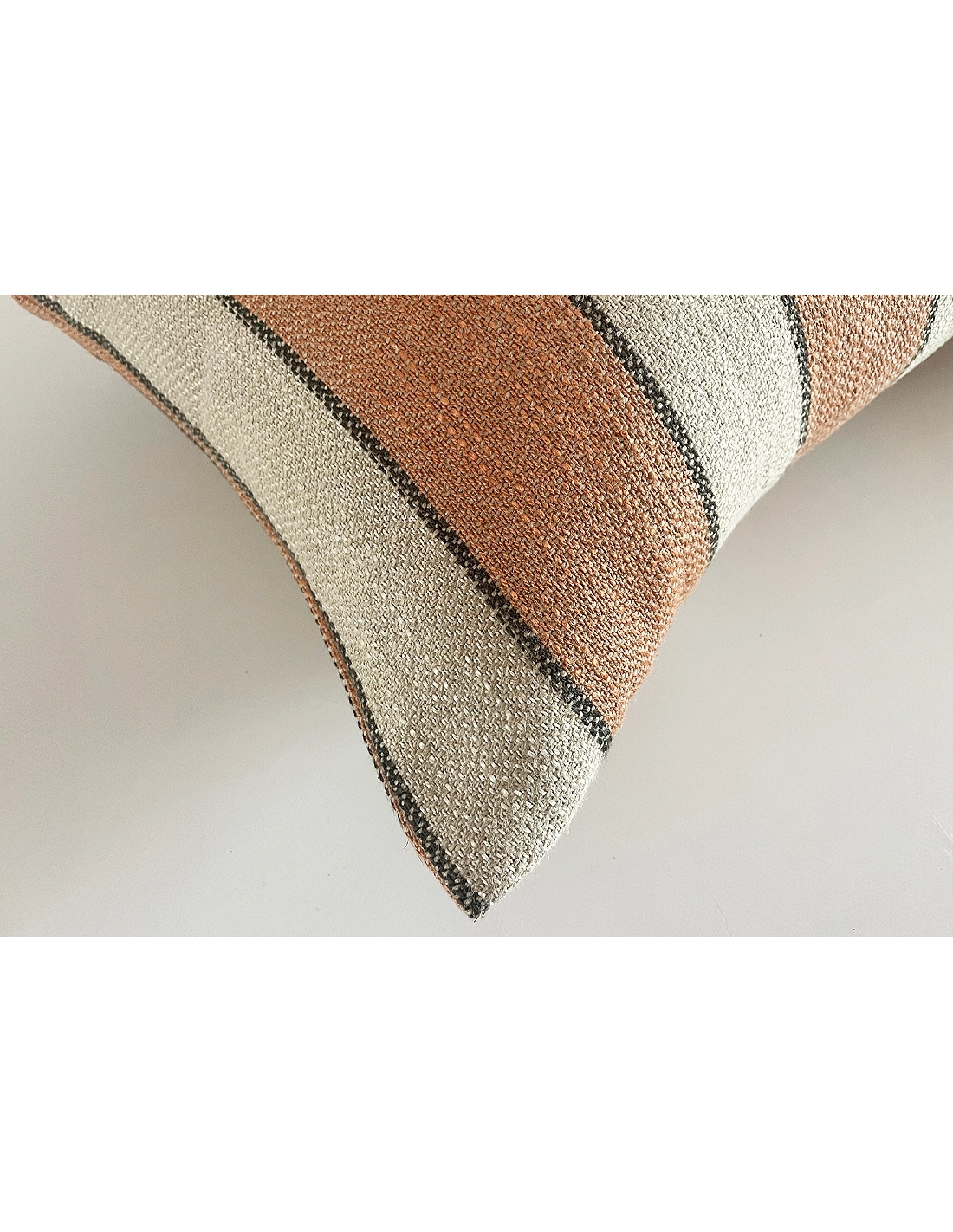 Housse de coussin réversible, avec rayures des deux côtés et fermeture éclair à une extrémité.