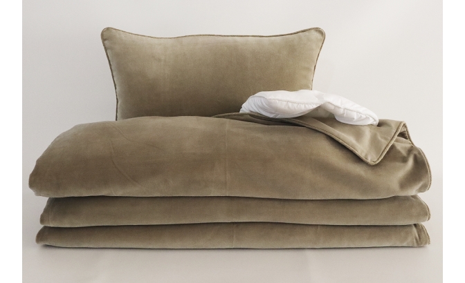 Plaid à deux faces, une face en velours et l'autre en coton.