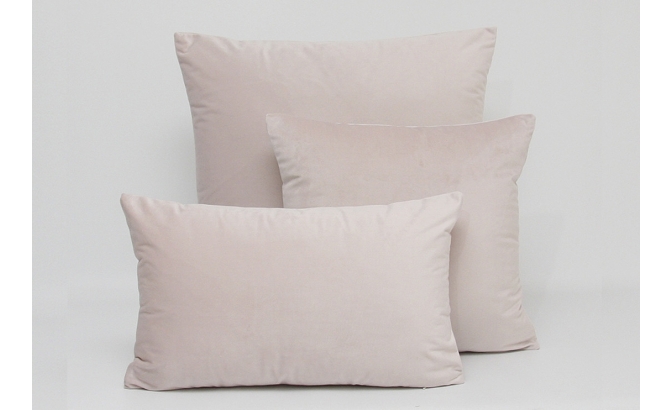 Housse de coussin en velours lisse. Il est réversible et possède un zip invisible, permettant de l'utiliser des deux côtés.