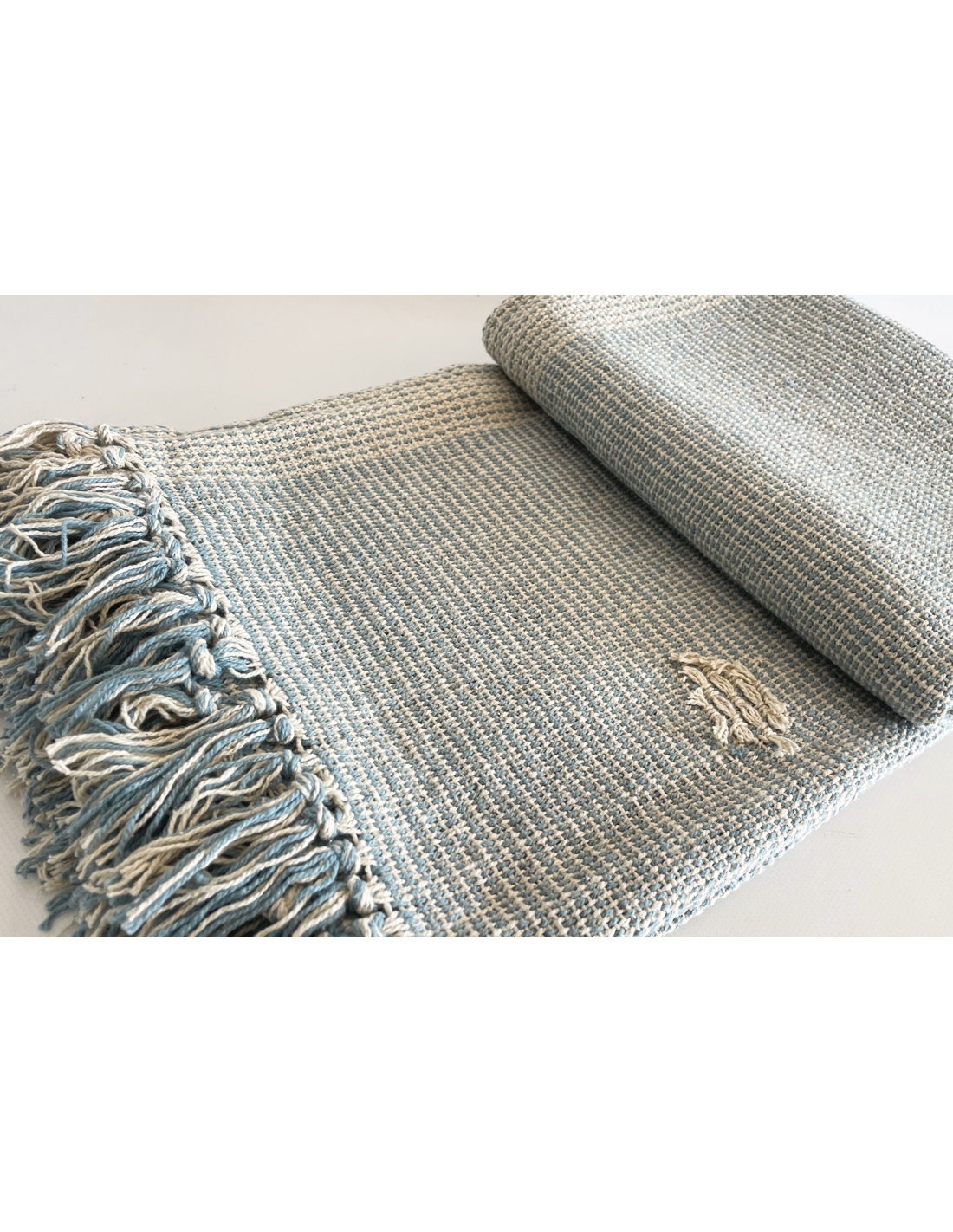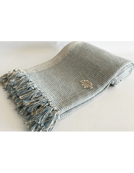 Couverture avec reliefs et franges aux extrémités.