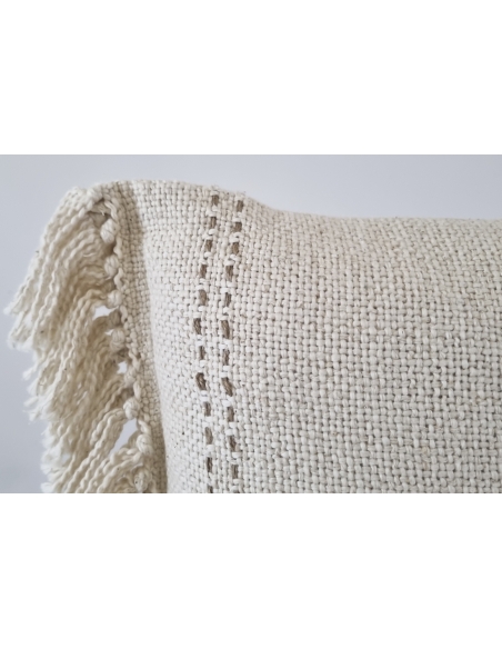Housse de coussin en tissu doux, travaillée selon une technique irrégulière qui associe la fibre de jute au coton. Cette fusion de matériaux naturels donne une touche unique et spéciale, ce qui en fait le complément parfait à tout décor.