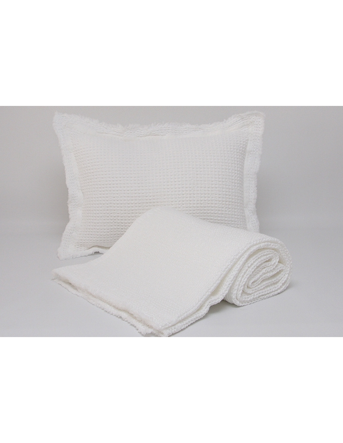 Couverture avec point "nid d'abeille", lavé et pré-rétréci, ce qui la rend très agréable au toucher et pratique, car elle ne rétrécit pas au lavage.