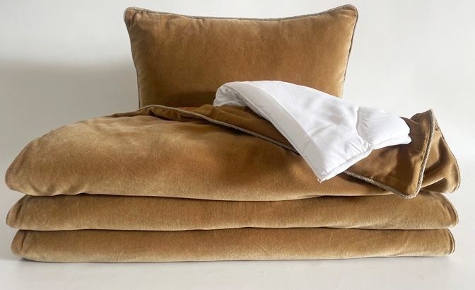Plaid à deux faces, une face en velours et l'autre en coton.
