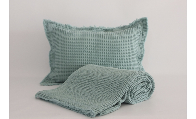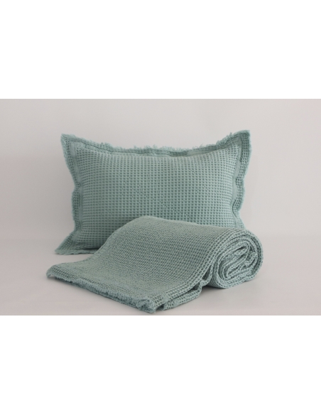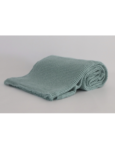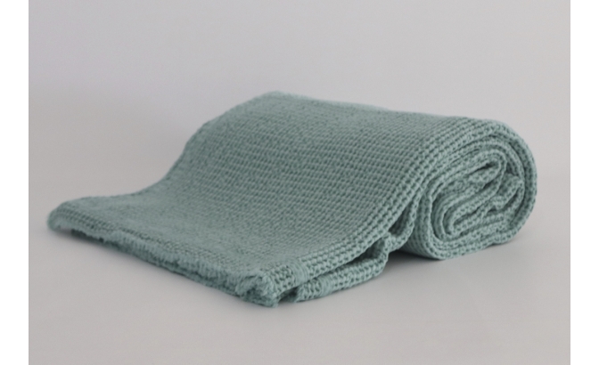 Couverture avec point "nid d'abeille", lavé et pré-rétréci, ce qui la rend très agréable au toucher et pratique, car elle ne rétrécit pas au lavage.