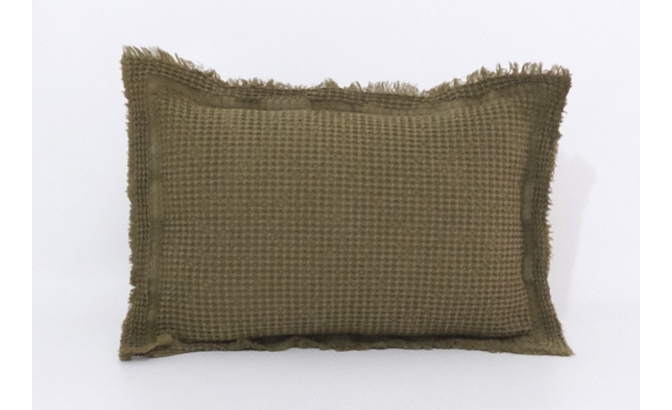 Housse de coussin avec point "nid d'abeille", lavé et pré-rétréci, ce qui la rend très agréable au toucher et pratique, car elle ne rétrécit pas au lavage.