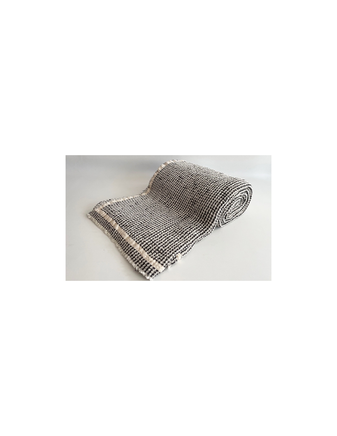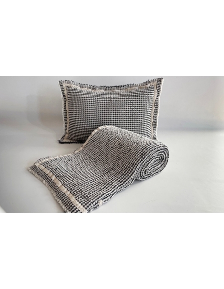 Couverture avec point "nid d'abeille", lavé et pré-rétréci, ce qui la rend très agréable au toucher et pratique, car elle ne rétrécit pas au lavage.
