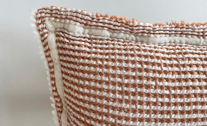 Housse de coussin avec point "nid d'abeille", lavé et pré-rétréci, ce qui la rend très agréable au toucher et pratique, car elle ne rétrécit pas au lavage.