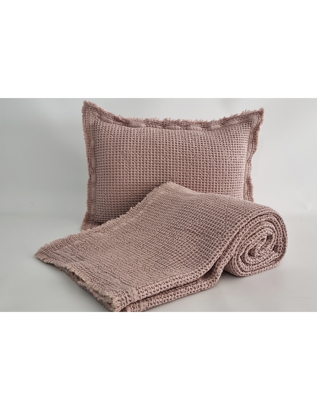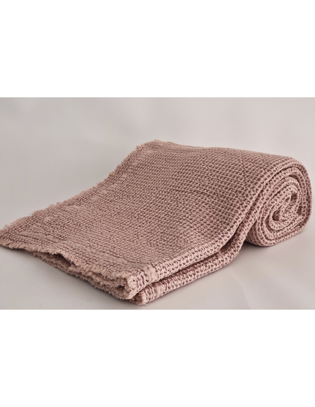 Couverture avec point "nid d'abeille", lavé et pré-rétréci, ce qui la rend très agréable au toucher et pratique, car elle ne rétrécit pas au lavage.