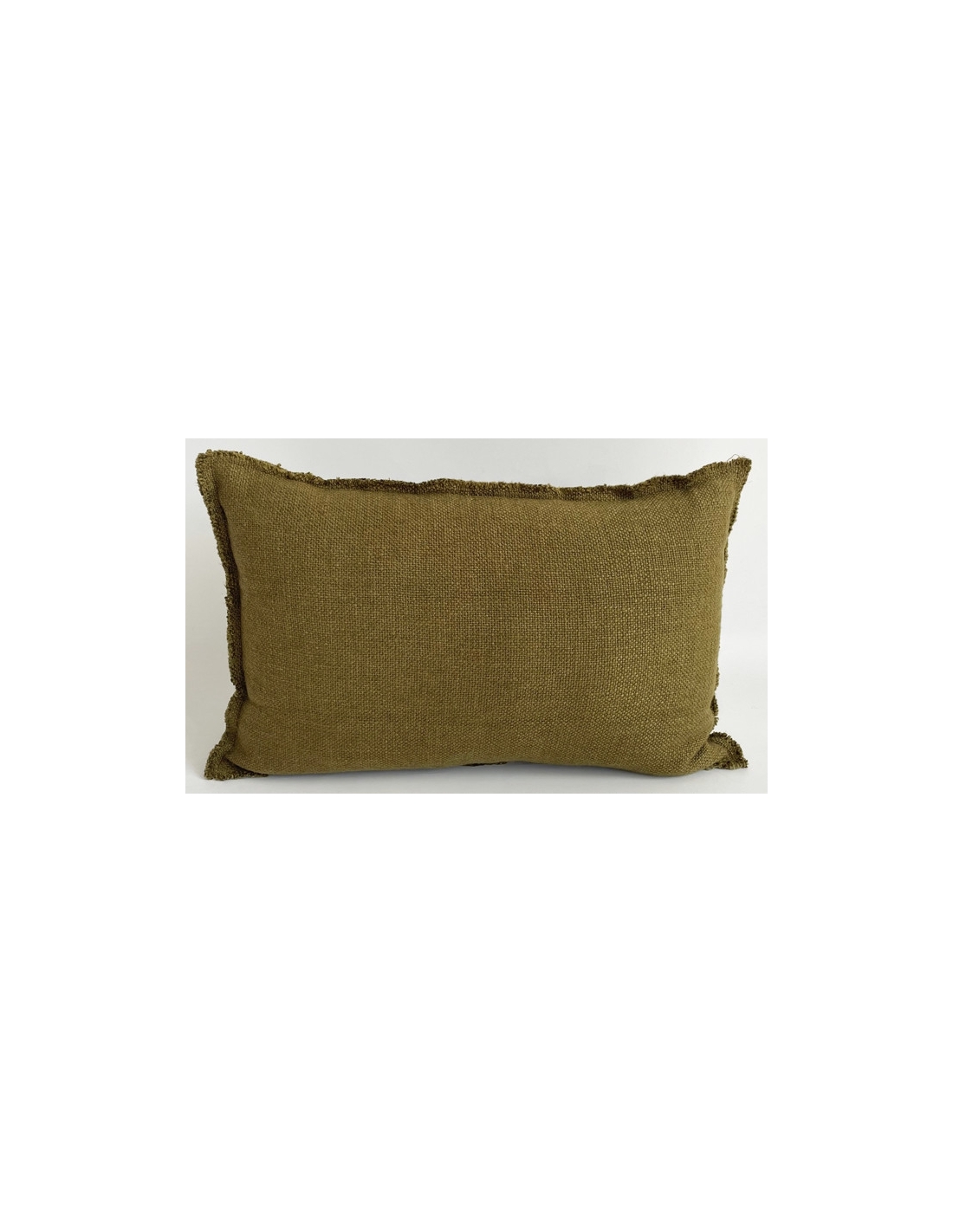 Housse de coussin unie bordée de franges. Réversible et dotée d'une fermeture éclair invisible.