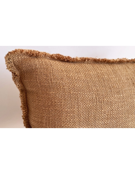 Housse de coussin unie bordée de franges. Réversible et dotée d'une fermeture éclair invisible.