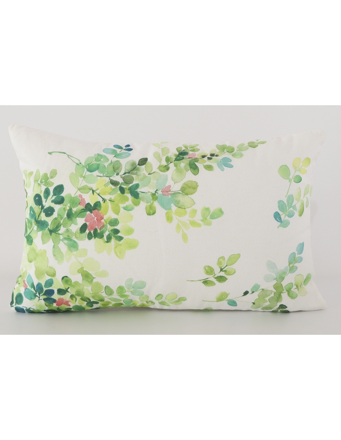 Housse de coussin en coton avec impression numérique sur le devant et dos uni, identique à la couleur de fond. Il a un zip invisible sur un côté.