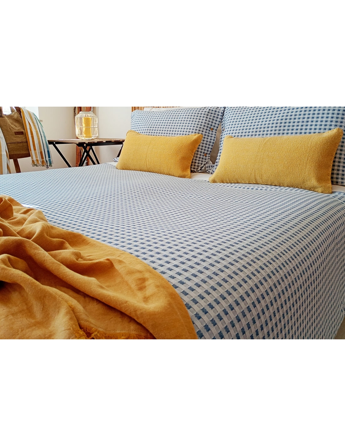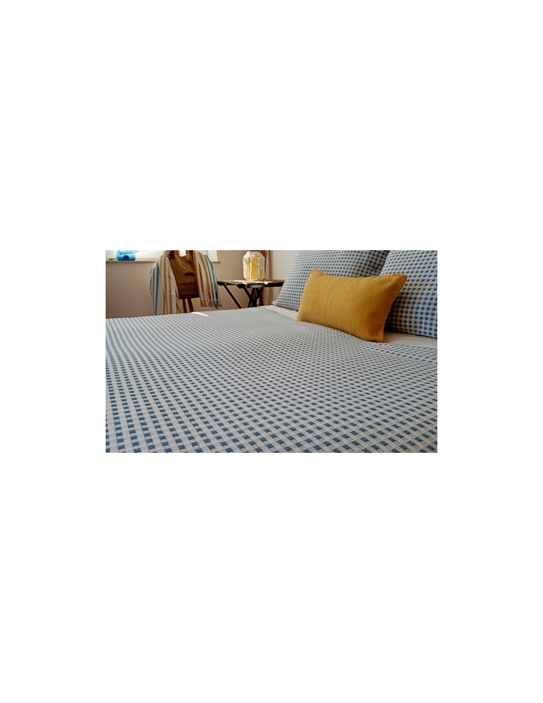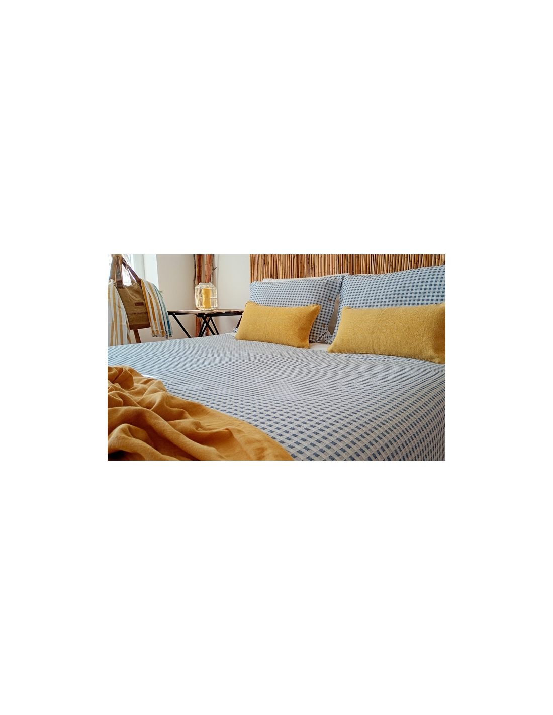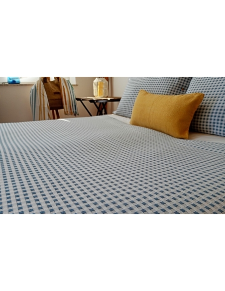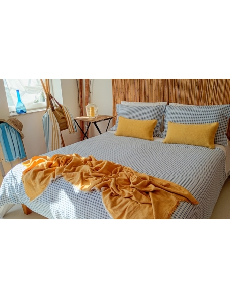 Le sac se ferme par un rabat de 0,45 cm en bas pour se placer sous le matelas ou faire une enveloppe, l'empêchant de glisser. Les coussins se ferment avec des boutons des deux côtés.