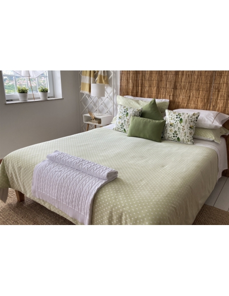 Housse de couette 100% coton avec motif et revers en percale 200 fils, ainsi que des oreillers de différentes tailles.
