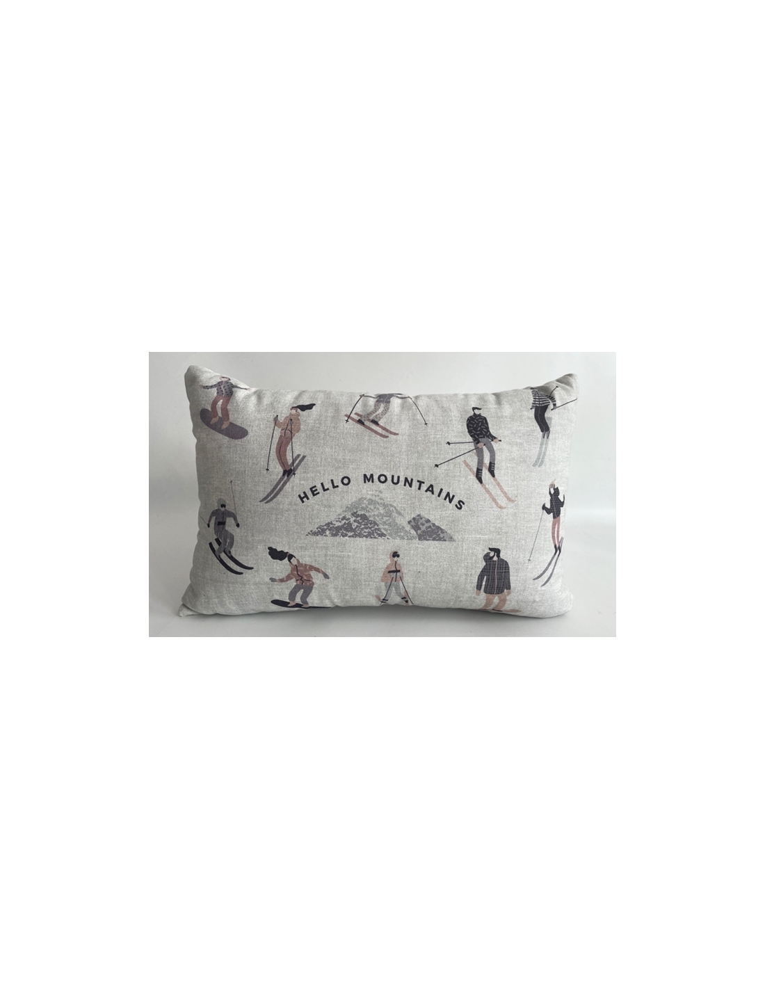 Housse de coussin en coton avec impression numérique sur le devant et dos uni, identique à la couleur de fond. Il a un zip invisible sur un côté.