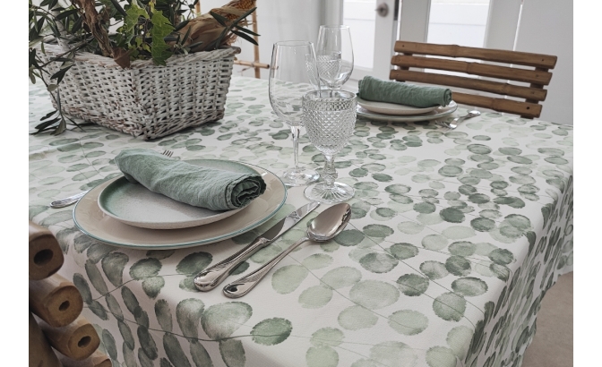 Nappe imprimée avec traitement anti-imperfections et anti-rides.