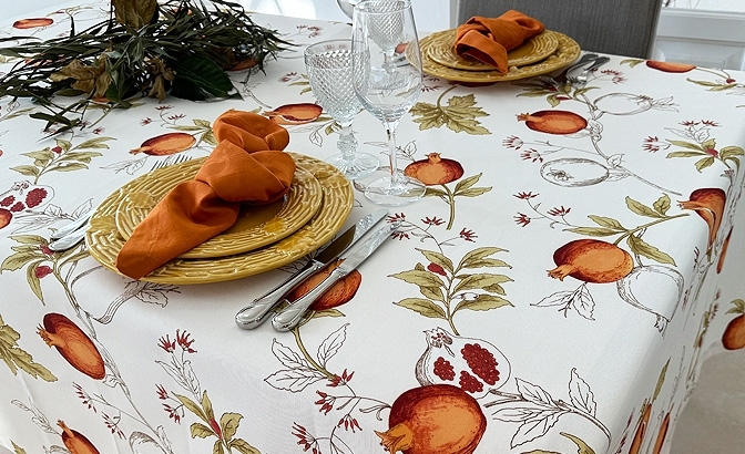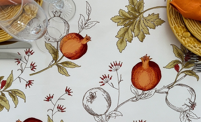 Nappe imprimée avec traitement anti-imperfections et anti-rides.