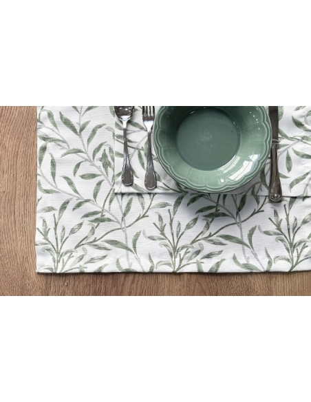 Set de table imprimée avec traitement anti-imperfections et anti-rides.