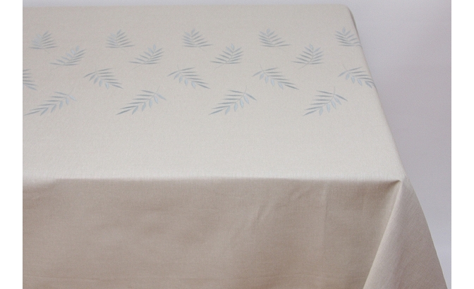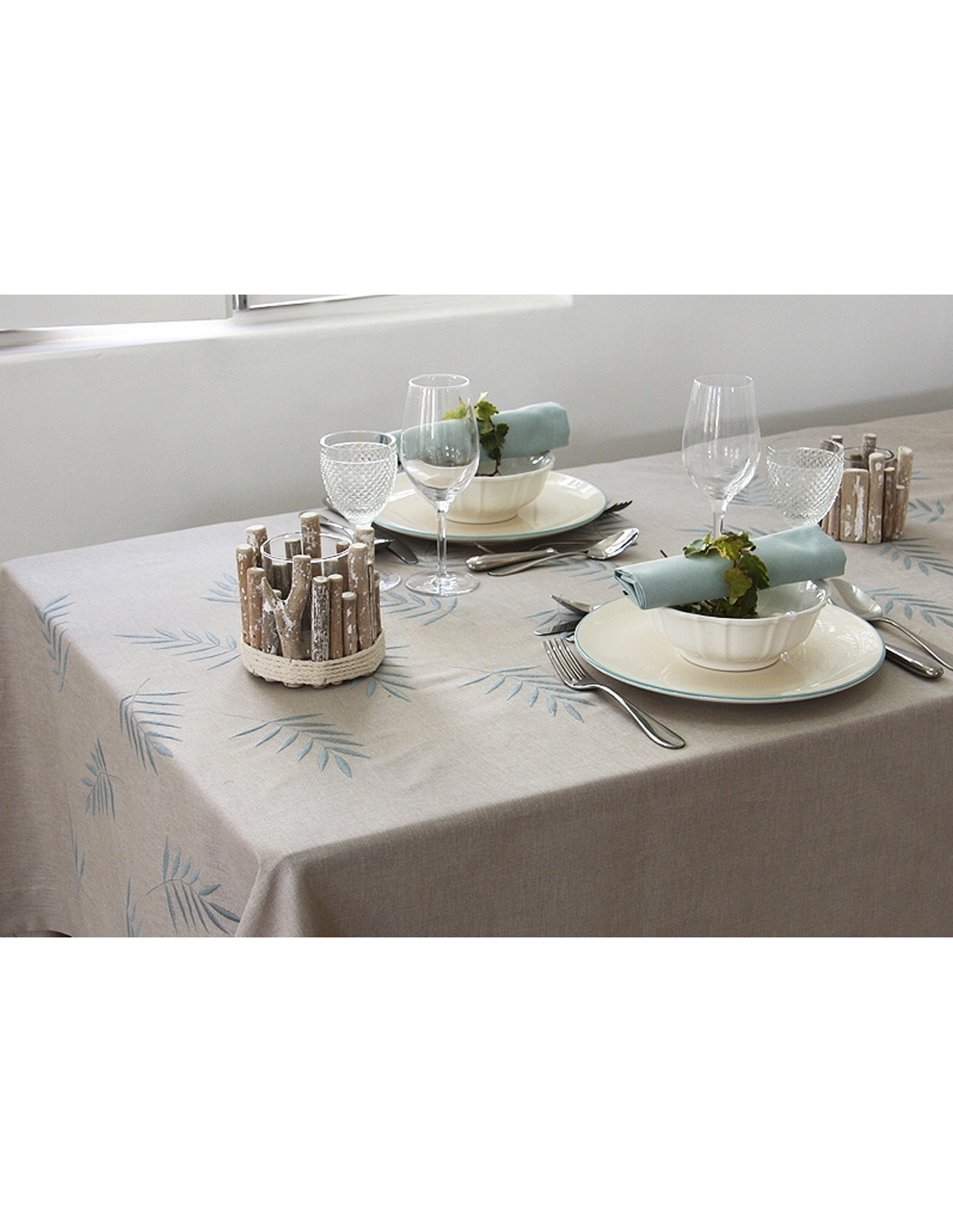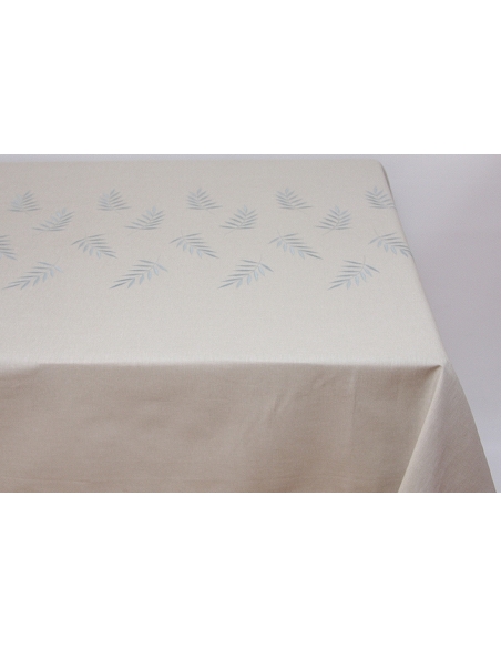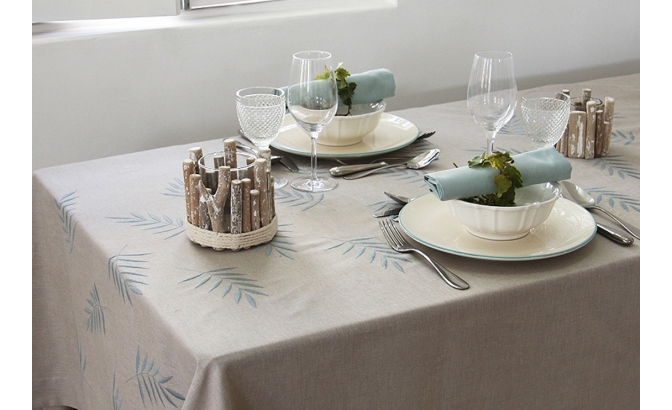 Nappe avec broderie colorée au centre, sur toute la longueur, formant un effet chemin de table.