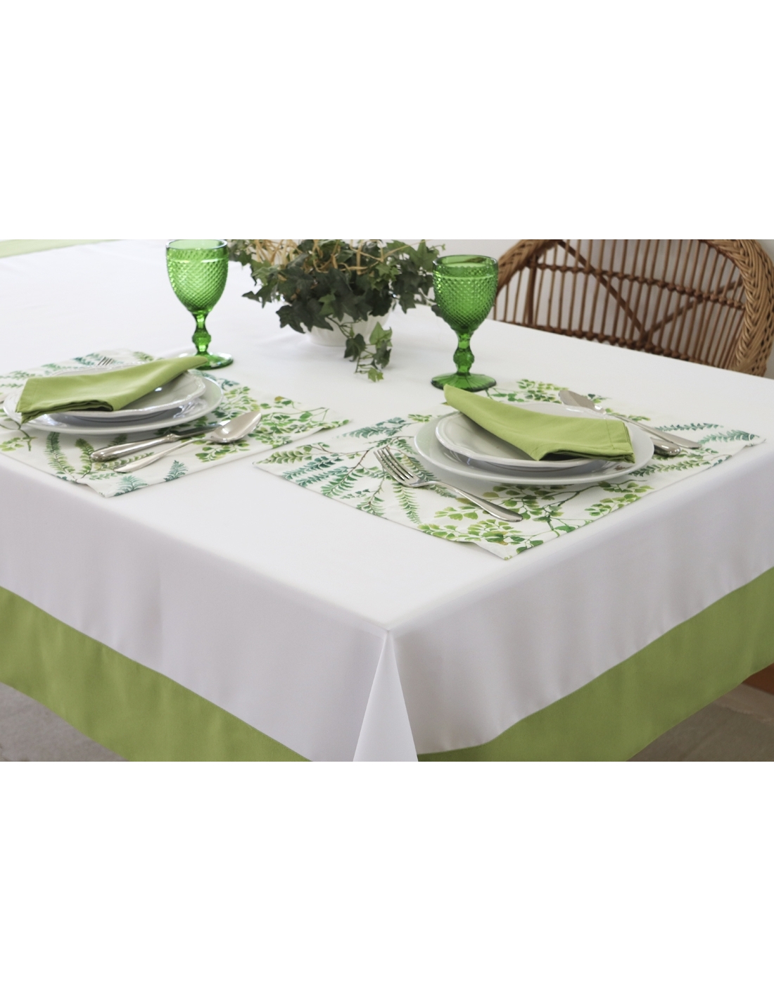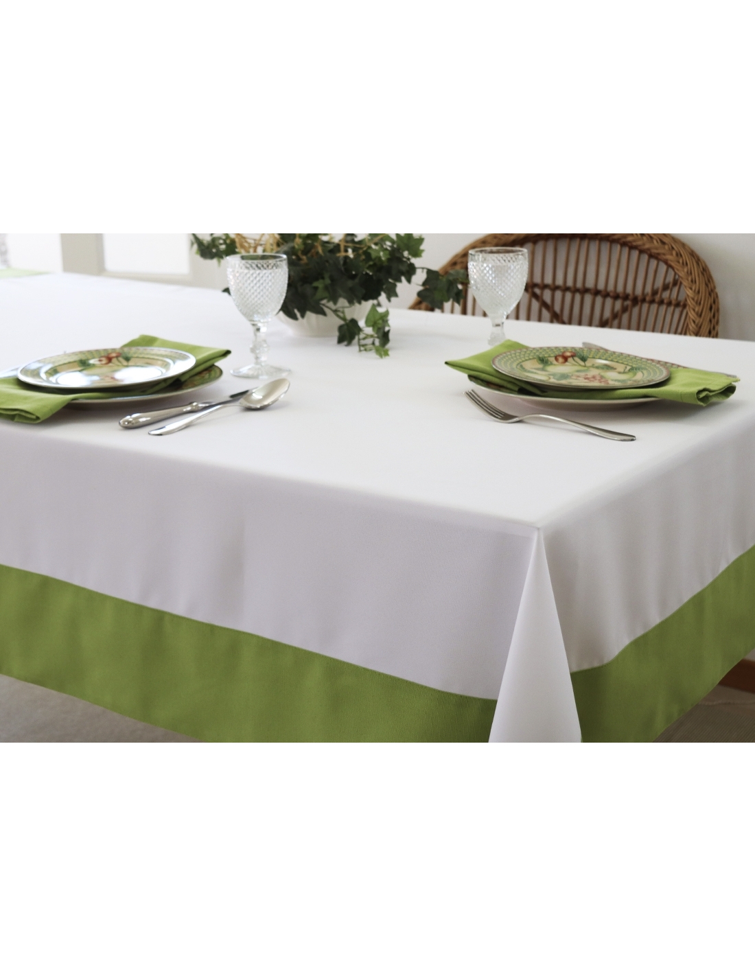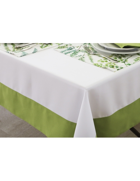Nappe lisse avec une barre de couleur de 14 cm tout autour, avec traitement anti-imperfections et anti-rides.