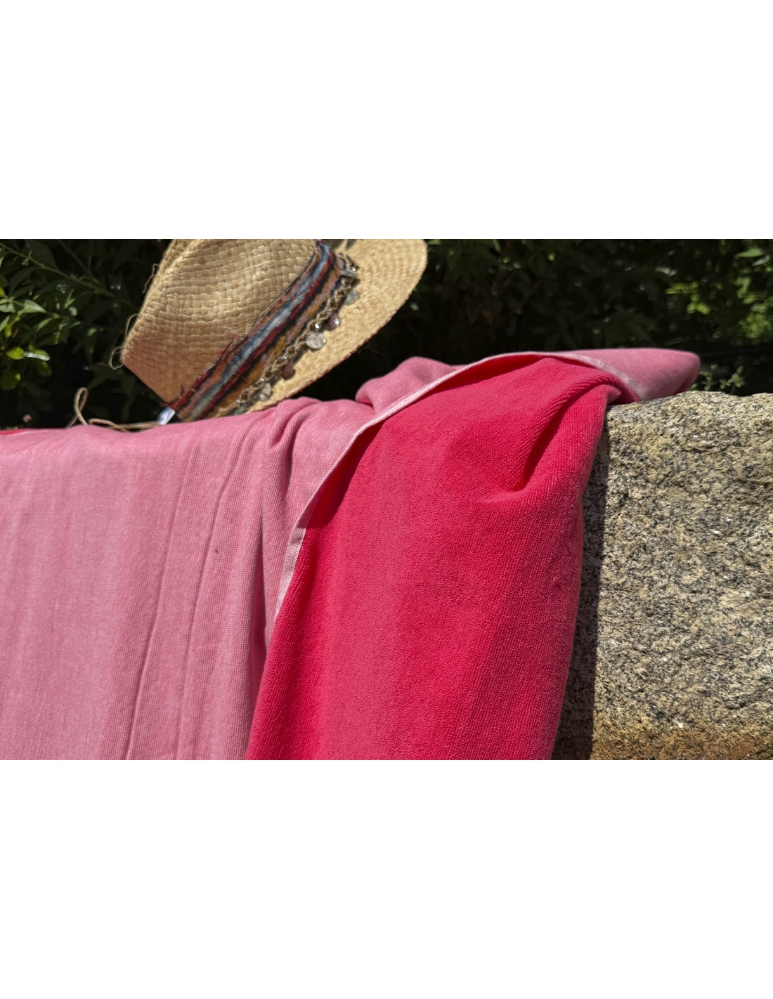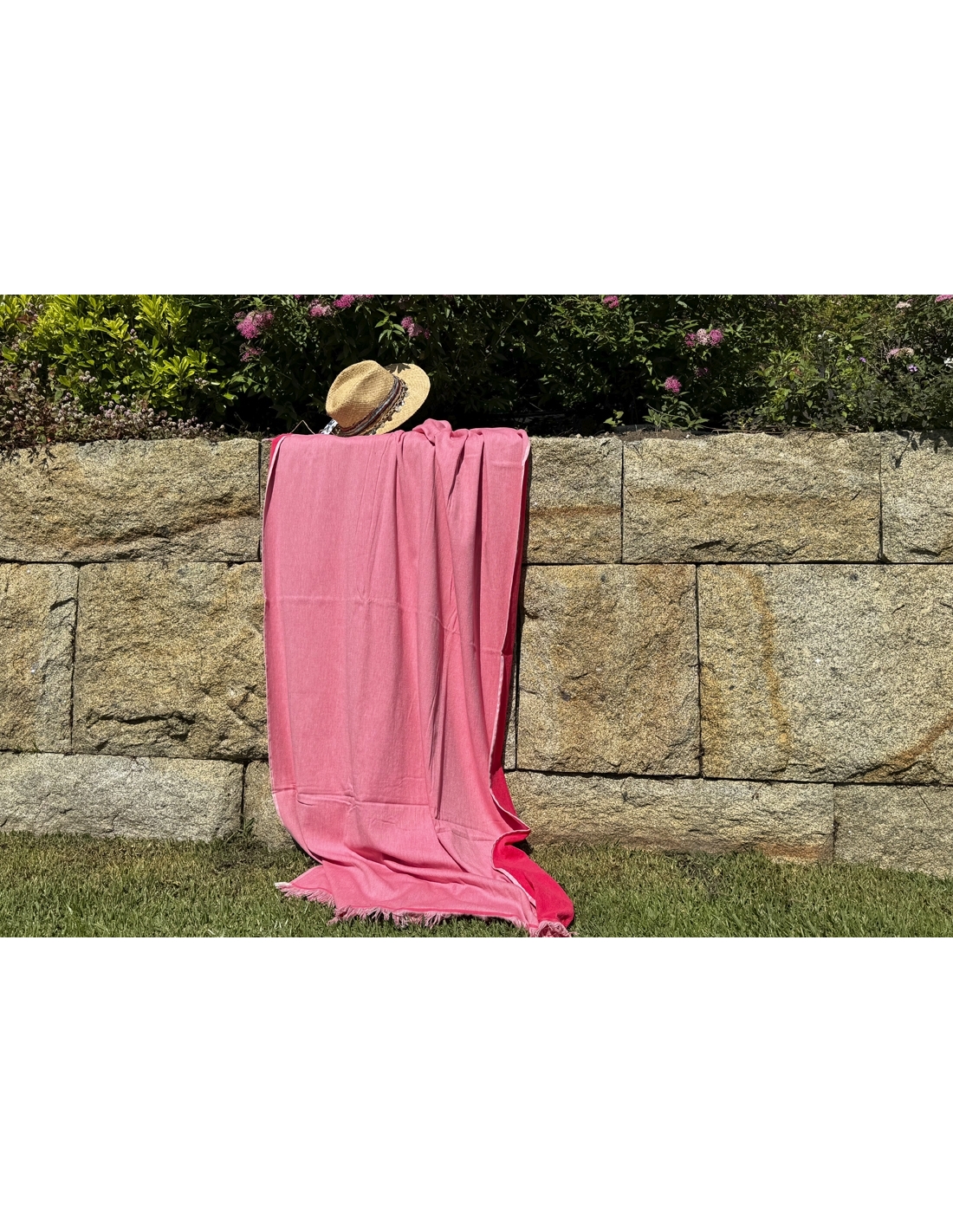 Serviette de plage de type paréo avec intérieur en tissu éponge. L'intérieur en éponge lui confère une bonne capacité d'absorption de l'eau et son tissu fin en coton le rend doux au toucher, confortable et sèche rapidement. Il est réversible et peut être utilisé des deux côtés.